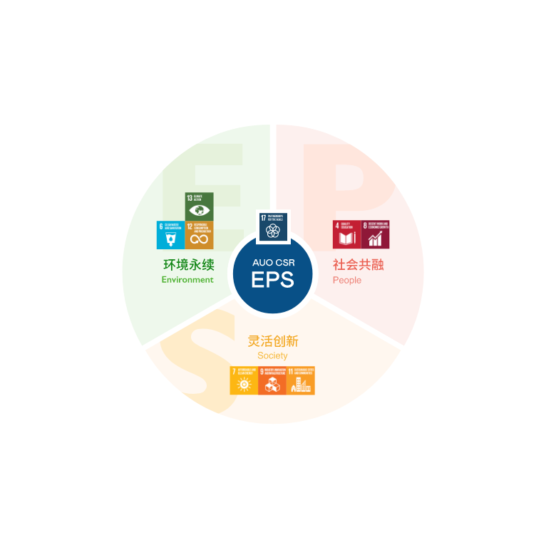 根据联合国所发展的17项永续发展目标,bb贝博Ballbet光电以「超越企业社会责任,创造共享价值」为企业永续愿景发展蓝图,订出环境永续、共融成长与灵活创新的EPS(Environment, People & Society)三大永续发展主轴;以响应日益受关切的环境议题与社会共融趋势。